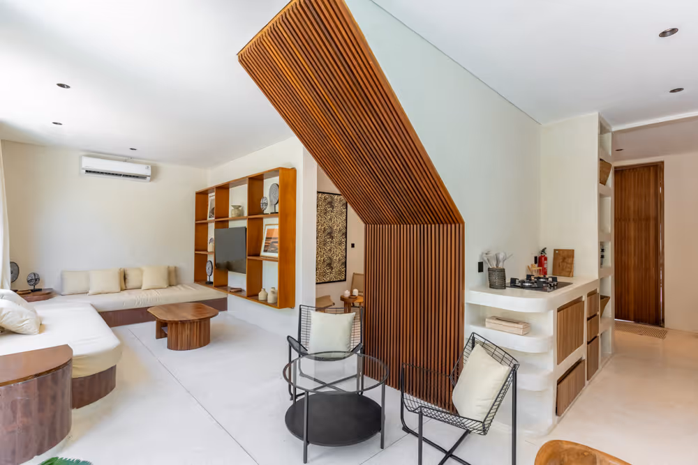 Located in the peaceful Nyang Nyang area of Uluwatu, Naya Villa 2BR offers a warm and well-balanced tropical home for buyers exploring Bali houses for sale or considering buying property in Uluwatu. Designed with natural materials and soft neutral tones, the villa combines comfort and practicality with a relaxed Bali lifestyle.
